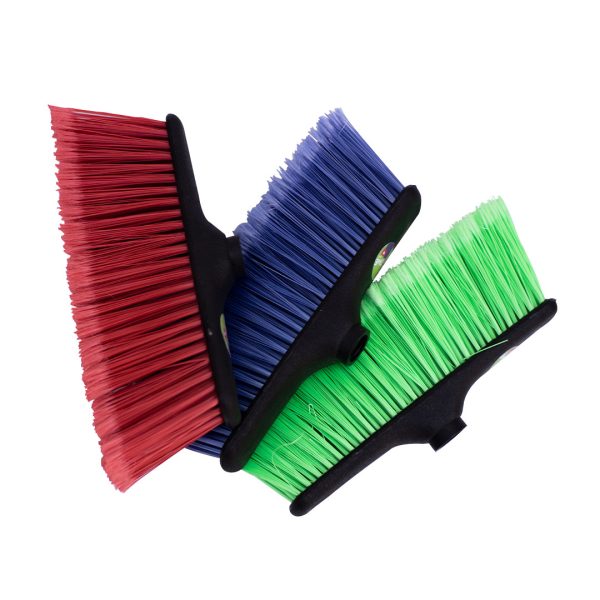Escobillón de plástico con mango de madera, ideal para limpieza en espacios reducidos.