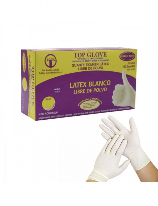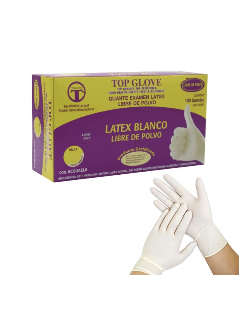 Guante de látex tamaño pequeño para uso en cajas, paquete de 100 unidades.