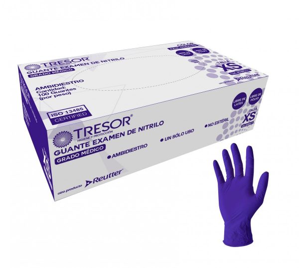 Guante de nitrilo tamaño mediano, caja con 100 unidades. Ideal para protección en diversas actividades.