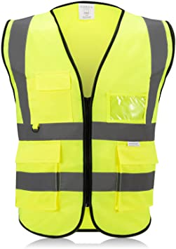 Chaleco reflectante con bolsillos y cierre en color amarillo para mayor visibilidad y seguridad.
